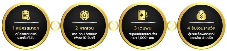 ตอบ : - กรอกข้อมูลส่วนตัวในแบบฟอร์มสมัครสมาชิก ยืนยันเบอร์โทรศัพท์ เพิ่มบัญชีธนาคาร รอรับ username และ password จากระบบ เริ่มเล่นได้ทันที